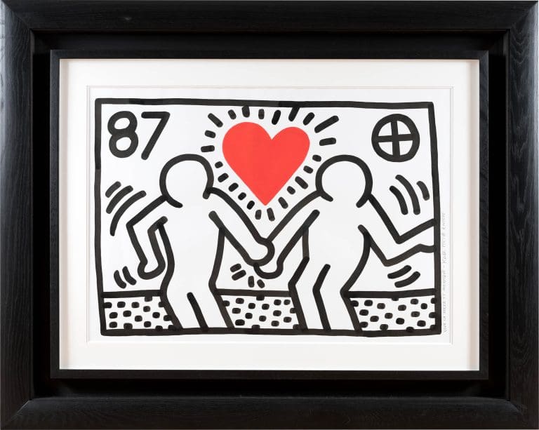 Militant, il met son art au service de causes sociales : lutte contre le racisme, l’apartheid, la drogue, et surtout la sensibilisation au VIH/sida. Diagnostiqué séropositif en 1988, il intensifie ses projets, fonde la Keith Haring Foundation (1989) pour soutenir l’enfance et la recherche contre le sida, et multiplie les fresques publiques accessibles à tous, notamment le mural “Crack is Wack” (1986) à Harlem et des œuvres en Europe (Berlin, Pise). Sa démarche démocratise l’art via le Pop Shop, rendant ses motifs disponibles à prix abordable sans renoncer à l’exigence artistique. Mort en 1990, il laisse une œuvre iconique qui relie créativité, engagement communautaire et visibilité des minorités.