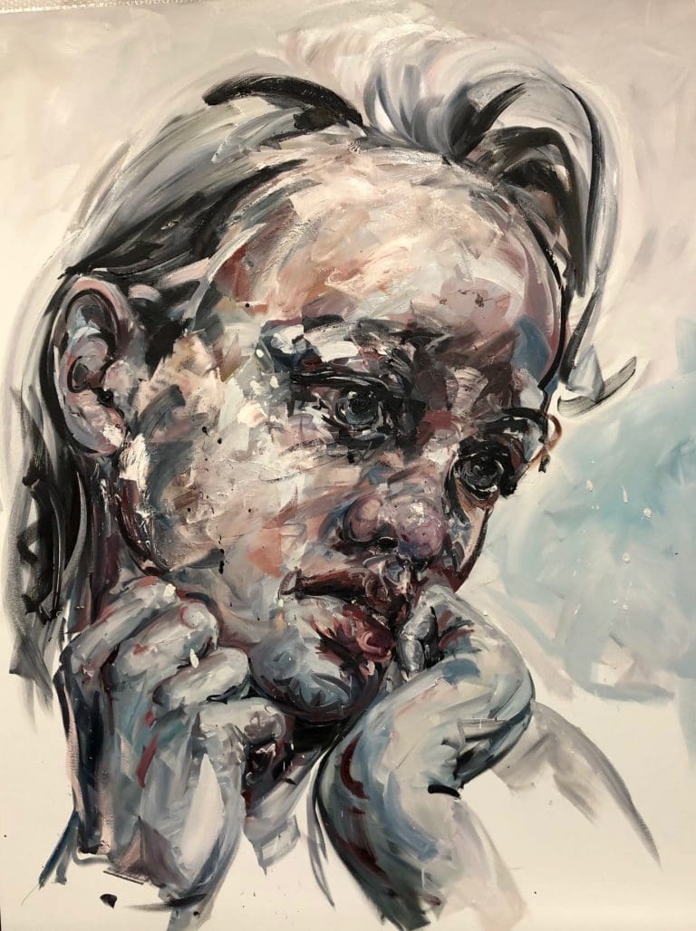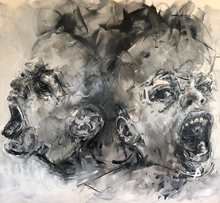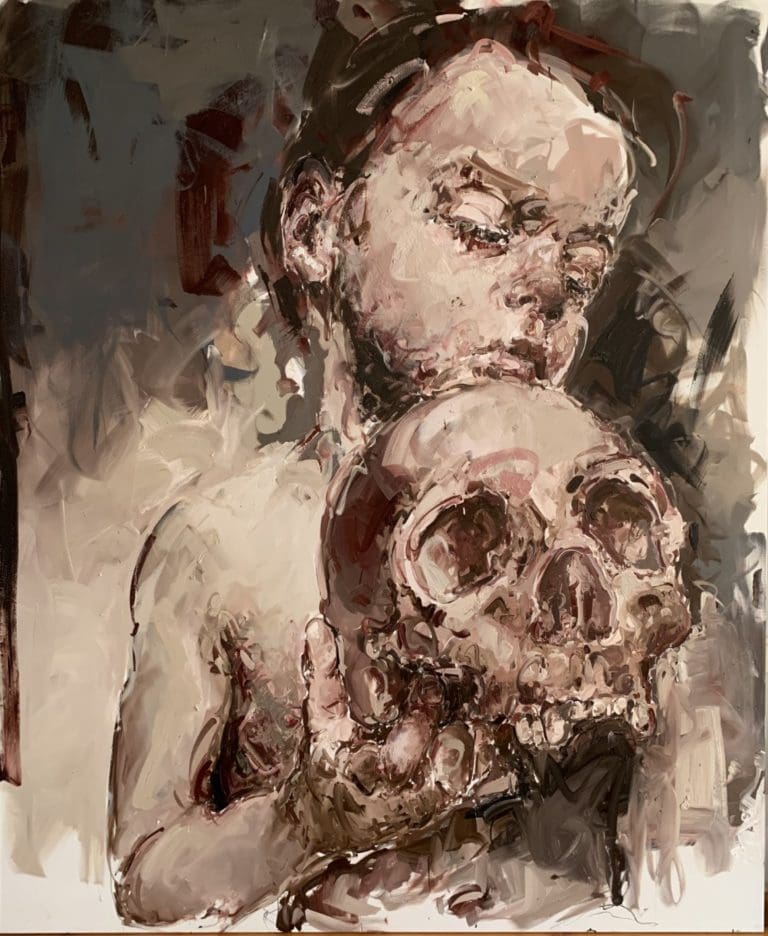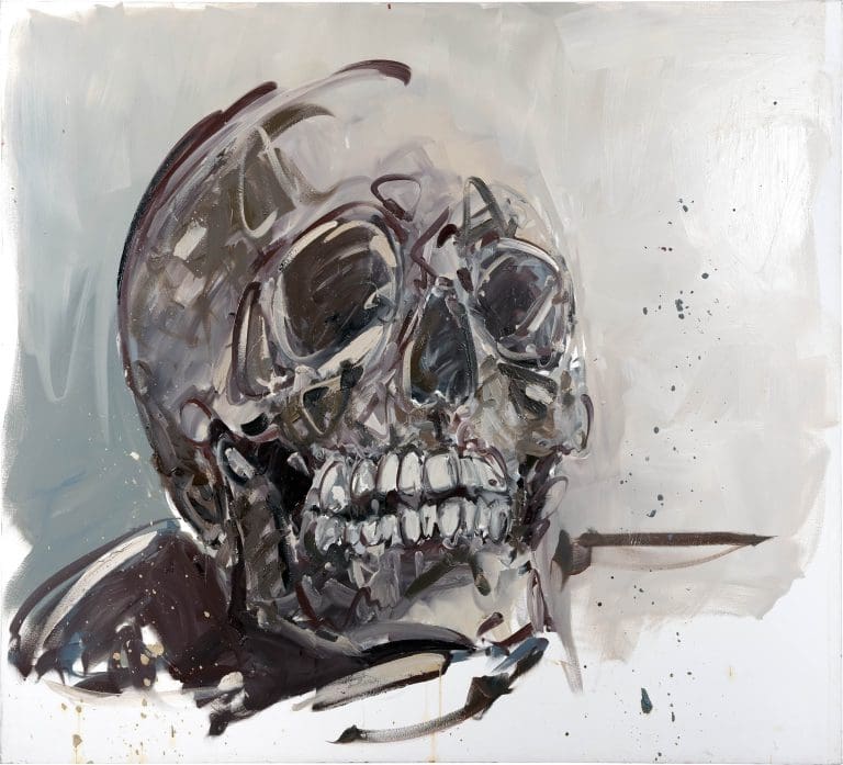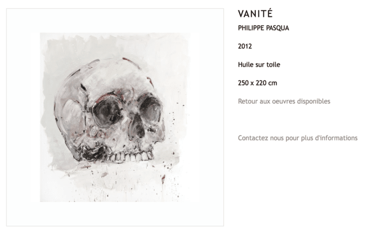 Philippe Pasqua (né en 1965 à Grasse) est un artiste français autodidacte connu pour ses portraits monumentaux et ses vanités, explorant vulnérabilité, mémoire et mortalité. Sa pratique, ancrée dans une gestualité vigoureuse, associe huiles épaisses, glacis, effacements et coulures, produisant des visages lacérés de lumière et d’ombre. Il peint souvent des personnes marginalisées ou fragilisées (travailleurs du sexe, personnes en situation de handicap, proches), ainsi que des crânes humains et des papillons, motifs qui articulent beauté et précarité. À partir des années 2000, il développe des sculptures (crânes, têtes géantes, carcasses) en bronze, marbre ou résine, et des pièces en taxidermie, dont un requin grandeur nature, accentuant la dimension memento mori.