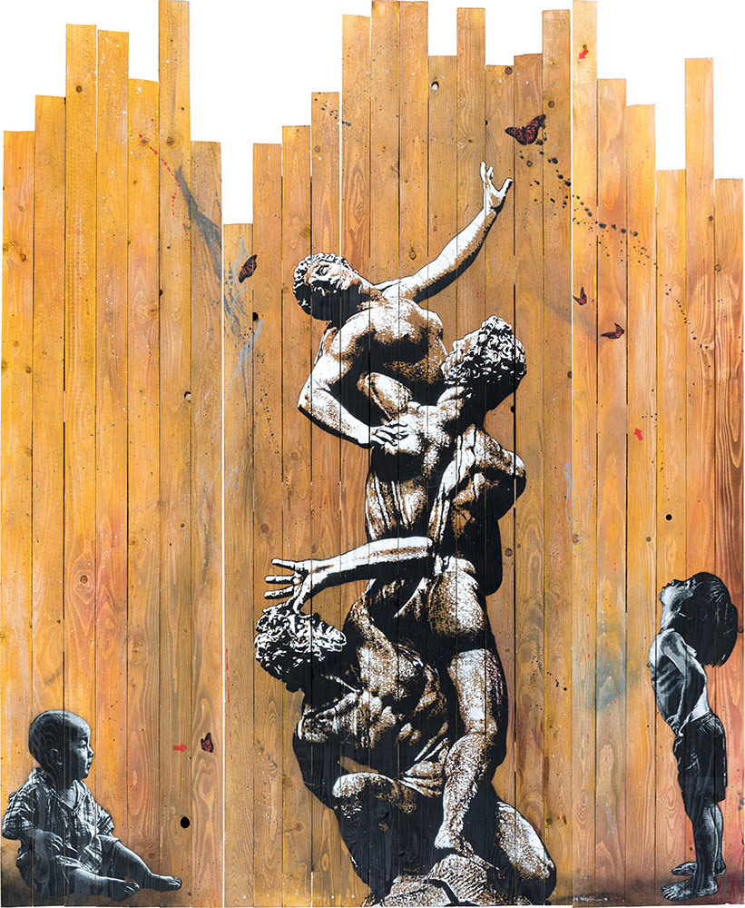 Pochoirs Et Aérosol Sur Palissade En Bois